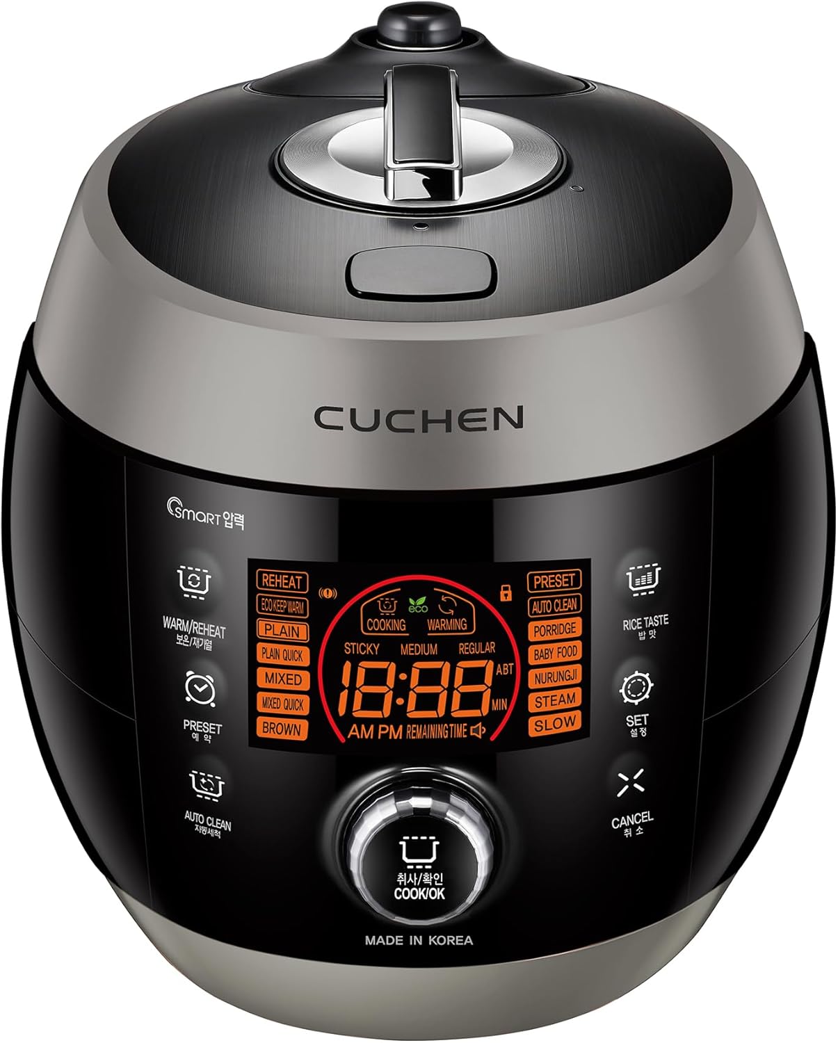 Cuchen rice cookers and warmers are the best products made in Korea. The pot has advanced features, smart jog wheel, voice navigation function (English/Korean/Chinese), pressure heating, power saving mode, auto cleaning, cover Three-layer electric, easy-to-clean lid and premium Dyking-coated inner pot.